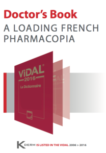 K’Derm’s skincare treatments are listed in Vidal, the indispensable Doctor’s Medical Reference Book,used by professionals in their medical and prescriptive practices in France. Vidal is circulated to 103,000 doctors, and is based on strict and regulated guidelines, and relies on pharmacologists, researchers and doctors expertise.