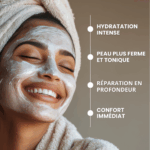 En seulement 10 minutes, sa texture crème généreuse délivre un soin intensif qui détend, répare et restructure la peau.